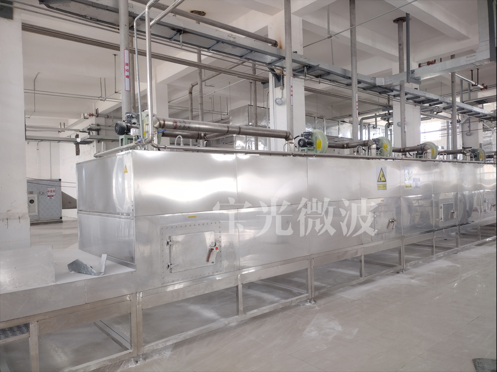 ◎ 步驟四:傳送帶按相應物料厚度設置運行速度,將物料送入多段微波干燥箱進(jìn)行加熱,干燥,糊精化,滅菌;多段微波干燥箱中每段微波干燥箱內的加熱溫度依次提高;