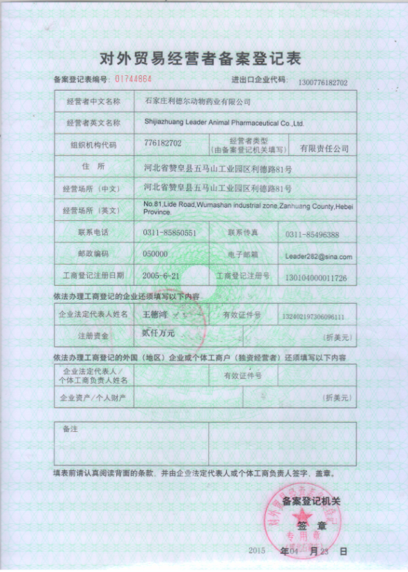 對(duì)外貿(mào)易經(jīng)營(yíng)者備案登記表