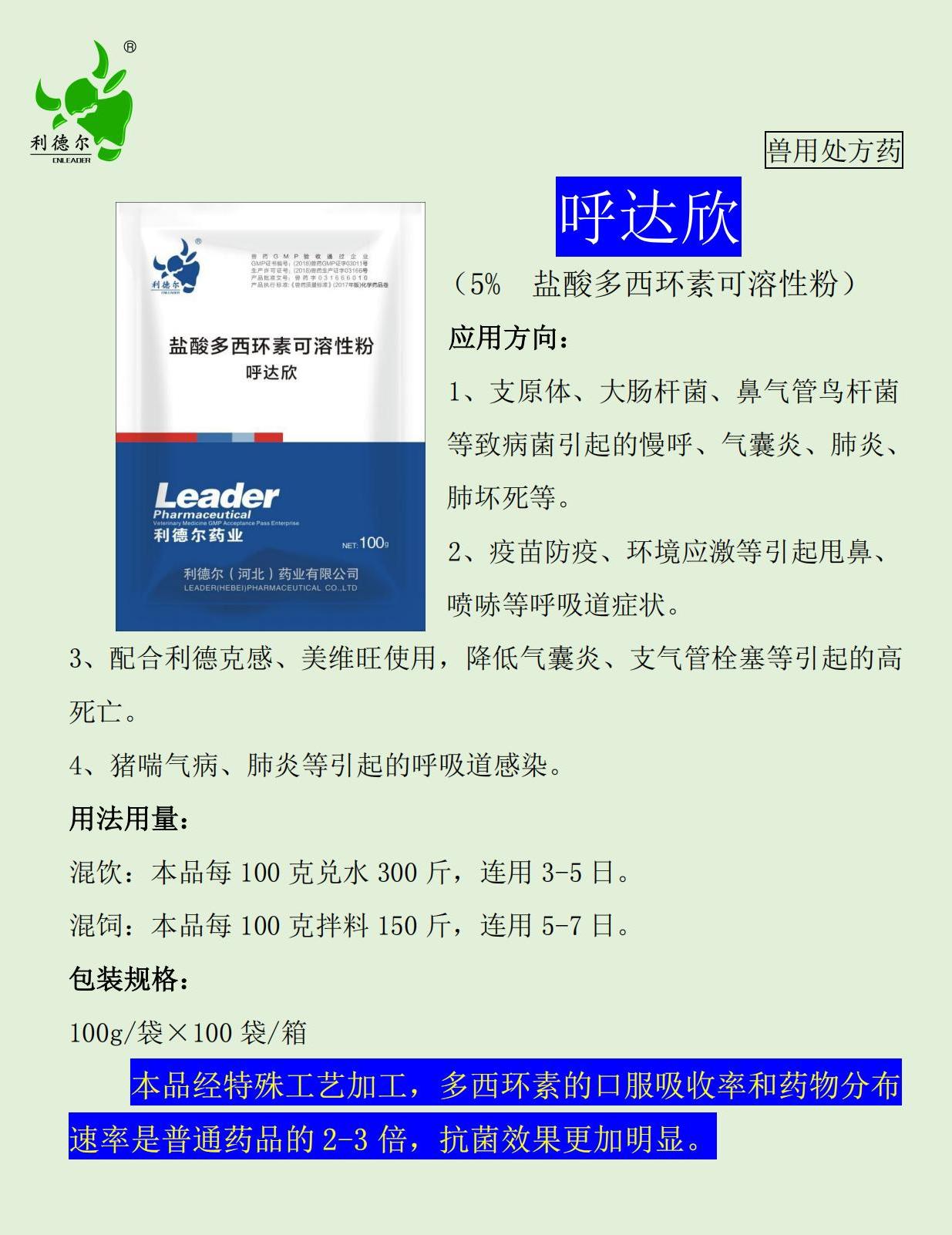 治療方案:感小潔15瓶/天,呼達(dá)欣25袋/天,美維旺15瓶/天,混合飲水,每天一次,連用5天。