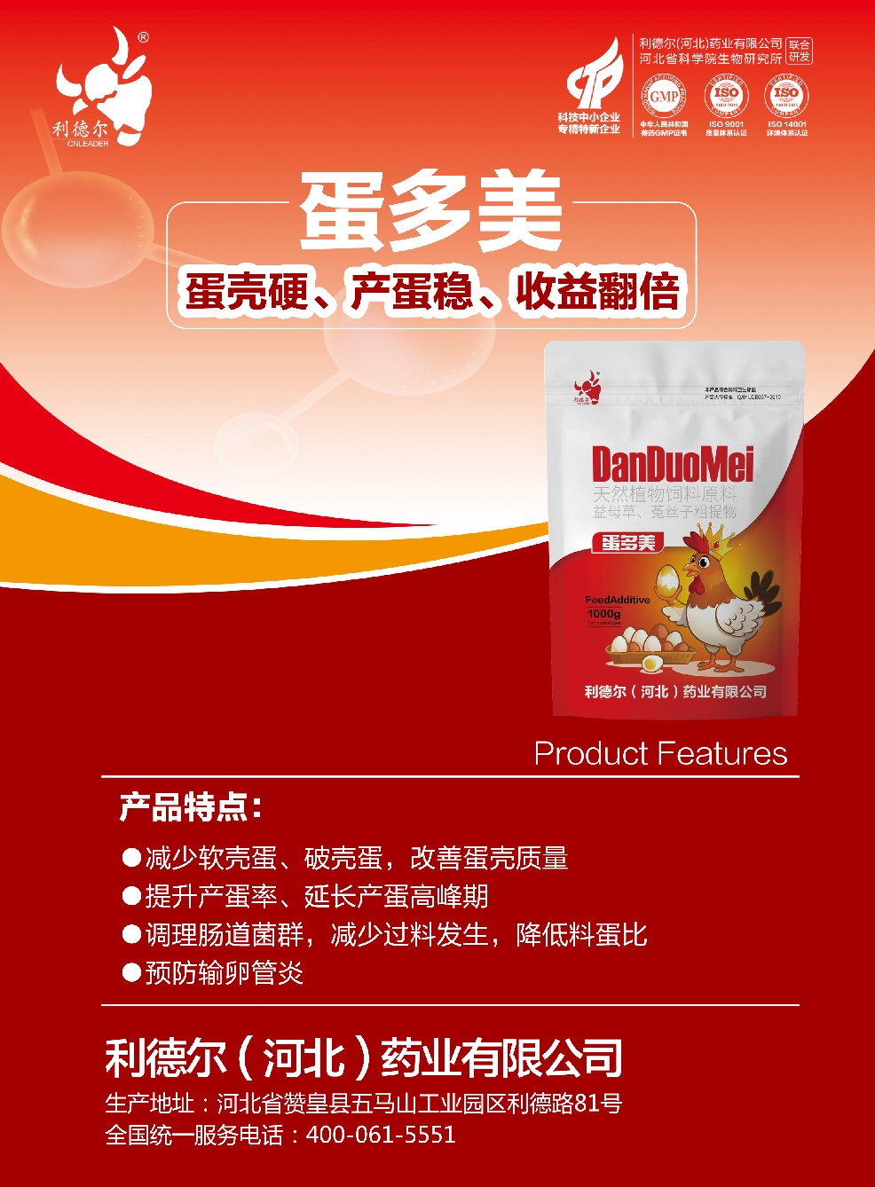 蛋多美對破殼蛋、糞蛋、軟殼蛋、沙皮蛋有明顯改善效果,對產(chǎn)蛋率、蛋殼厚度均有明顯效果。對輸卵管也有作用。