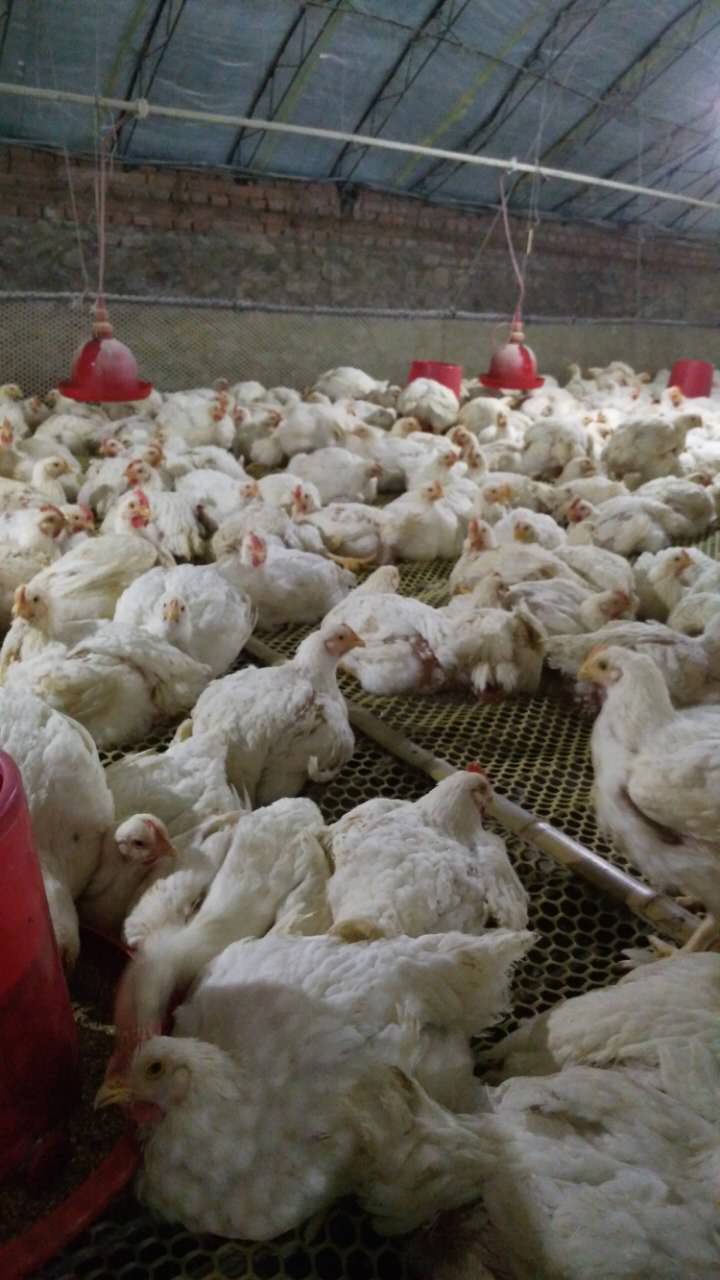 實(shí)驗(yàn)過(guò)程:從10日齡開(kāi)始使用腸益舒,至19日齡時(shí),由于冬季取暖用火不慎,火爐子把雞棚烤著了,損失了1200多只雞,剩余雞只狀況還算穩(wěn)定,腸益舒用到28日齡時(shí)實(shí)驗(yàn)結(jié)束,45日齡大群出欄。整個(gè)飼養(yǎng)期,雞舍沒(méi)有明顯的氨氣味,雞群沒(méi)有發(fā)生呼吸道病,雞群狀況良好。整個(gè)飼養(yǎng)期,總共耗料74000斤料(帶損失1200只雞的耗料,約為2400斤),出欄總重43684斤,出欄雞數(shù)6700只,只雞均重6.52斤。毛雞3.6元/斤,一只雞純掙3.8元。以前客戶每批雞的均重在6斤左右。一只雞多掙1.8元。相比同批次,其他養(yǎng)殖戶的雞,每只雞只掙了1.8—2.00元錢(qián),當(dāng)?shù)仞B(yǎng)殖戶,用的是自己配的粉料(玉米,料精,小料)。在該地區(qū)的料比一般在1:1.65-1.7,他這個(gè)減去那1200多只雞的料量,也就是2400斤料的話,料比為1:1.639。(以上數(shù)據(jù)是客戶實(shí)際反應(yīng)的數(shù)據(jù))