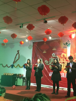 1月12日,公司的辦公樓,三樓會(huì)議室,裝扮的花團(tuán)錦簇,到處充滿(mǎn)了歡樂(lè)的氣氛,每一個(gè)人臉上洋溢著歡快的笑容,現(xiàn)場(chǎng)的背景以紅色為主調(diào),一排排紅色的燈籠,象征著生機(jī)勃勃的企業(yè)和紅紅火火的新春氣氛。