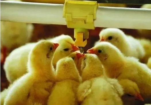 水對于剛出殼雛雞發(fā)育有著積極促進(jìn)作用。首先,在雛雞剛出殼后,卵黃囊內(nèi)的卵黃尚未被吸收完全,如果能夠有效利用卵黃囊內(nèi)的營養(yǎng)物質(zhì),可以促進(jìn)雛雞發(fā)育。做好飲水工作,可有效促進(jìn)卵黃內(nèi)物質(zhì)被吸收利用。其次,雛雞運輸過程中,會導(dǎo)致雛雞部分水分流失,而及時補(bǔ)充水源,對于雛雞維持機(jī)體正常發(fā)育也非常重要。最后,當(dāng)雛雞進(jìn)入育雛舍內(nèi),一般舍內(nèi)溫度較高、氣候較為干燥,加上雛雞排泄會導(dǎo)致體內(nèi)水分大量流失,因此非常有必要、有目的地補(bǔ)充水分,維持機(jī)體平衡,預(yù)防脫水癥的發(fā)生。