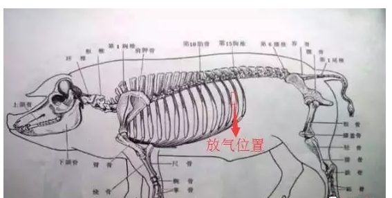 2、脹氣很明顯的治療,在病豬左側(cè)倒數(shù)第二三肋骨間,與背部平行位置用長(zhǎng)針頭扎入放氣,等到豬肚子小后在放氣的位置推注10%林可霉素(每公斤體重0.1毫升)和10%丁胺卡那(每公斤體重0.1毫升),甲硝唑和碳酸氫鈉靜脈滴注。