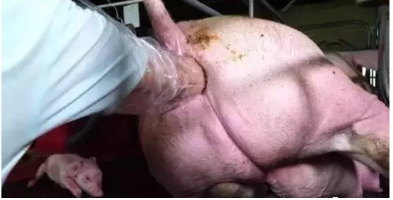 用肥皂水徹底清洗手臂后,再用冷開水沖洗掉肥皂水,往手臂上涂滿專用的潤(rùn)滑劑(也可帶上一次性無(wú)菌長(zhǎng)臂手套涂上潤(rùn)滑劑),然后五指并攏(剪短指甲不要?jiǎng)澠飘a(chǎn)道),隨手輕輕在產(chǎn)道旋轉(zhuǎn),慢慢伸進(jìn)產(chǎn)道,摸到小豬卡在子宮口,如果是摸到頭,可以把五指分開,食指跟中指放在小豬2個(gè)耳后,大拇指無(wú)名指小拇指并攏,慢慢將小豬帶出來(lái)。