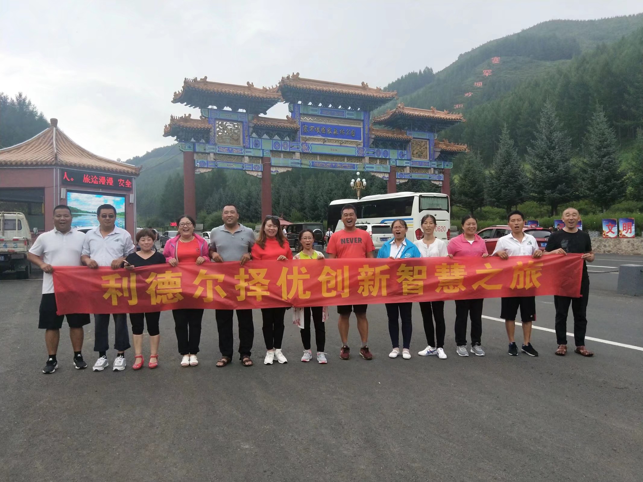 8月5日,公司一行十三個人,開啟了北上塞罕壩之旅。我們早上7點半出發(fā),好事多磨,在高速路口,受限制不能上去,只有繞道,另找入口。九點多終于上去。車在高速上馳騁,我們的心也跟著飛向草原,一路歡聲和笑語,大概到晚上9點左右,到達(dá)塞罕壩的大門。