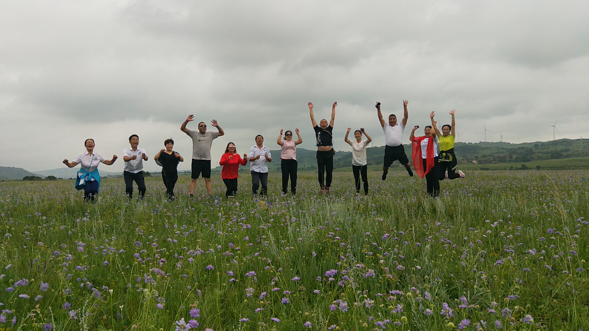 第二天,啟程直奔草原,車行駛沒有多遠(yuǎn),就看到了草原,路邊好多車,好多游客在駐足拍照留影,我們隨即停車。初入草原,瞬間被草原的草,草原的天,草原的花……被草原的一切吸引住了?上旃蛔髅,時不時的給我們來點小雨伴奏。進(jìn)入草原各種pose拍照,跳躍的,匍匐的,跑著的,感覺一切都是那么的美!
