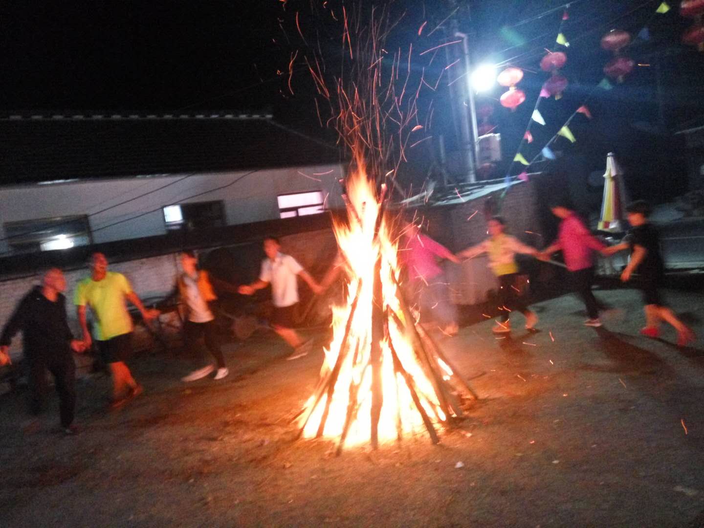 本以為已到目的地,結(jié)果還需開車?yán)@行而上,天黑,加上下雨,車速不敢太快,沿路沒有路燈,開始進(jìn)入森林地帶,真擔(dān)心,會不會從林子里跳出只“大貓”來!哈哈,開個玩笑了!大概有一個小時的行程,我們來到提前預(yù)定好的住所,香噴噴的烤全羊,已經(jīng)讓饑餓的肚子忍不住,流口水了,進(jìn)入房間放下行李,稍作收拾,直奔餐廳。十多個人圍著一張大圓桌,等待店家把全羊呈上來,羊烤的外焦里嫩,不到一個小時的時間一只60斤的羊,就剩下了骨頭架子,戰(zhàn)斗力不錯吧!由于氣候涼爽,空氣清新,飯后他們又一起跑去遛彎吸氧!呵呵,精神頭十足。