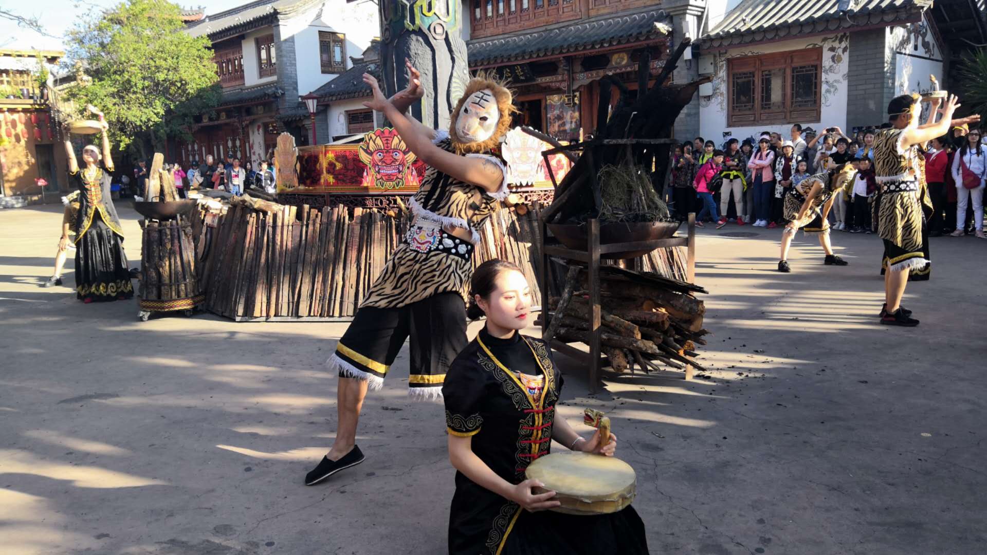 下午前往【彝人古鎮(zhèn)】,看熱情似火的彝族歌舞【彝鄉(xiāng)戀歌】,品嘗彝族特色美食【長(zhǎng)街宴】,欣賞美妙的彝族原生態(tài)歌舞盛典,品嘗彝家美食佳肴,觀看彝族原生態(tài)特色歌舞,是聽覺、視覺、味覺的三重享受,還能參與其中。宴席結(jié)束后參觀彝族【祭火大典】,滿場(chǎng)歡歌,熊熊的篝火燃起來,火把亮起來,游客和彝族人圍著篝火一起歡歌跳舞。