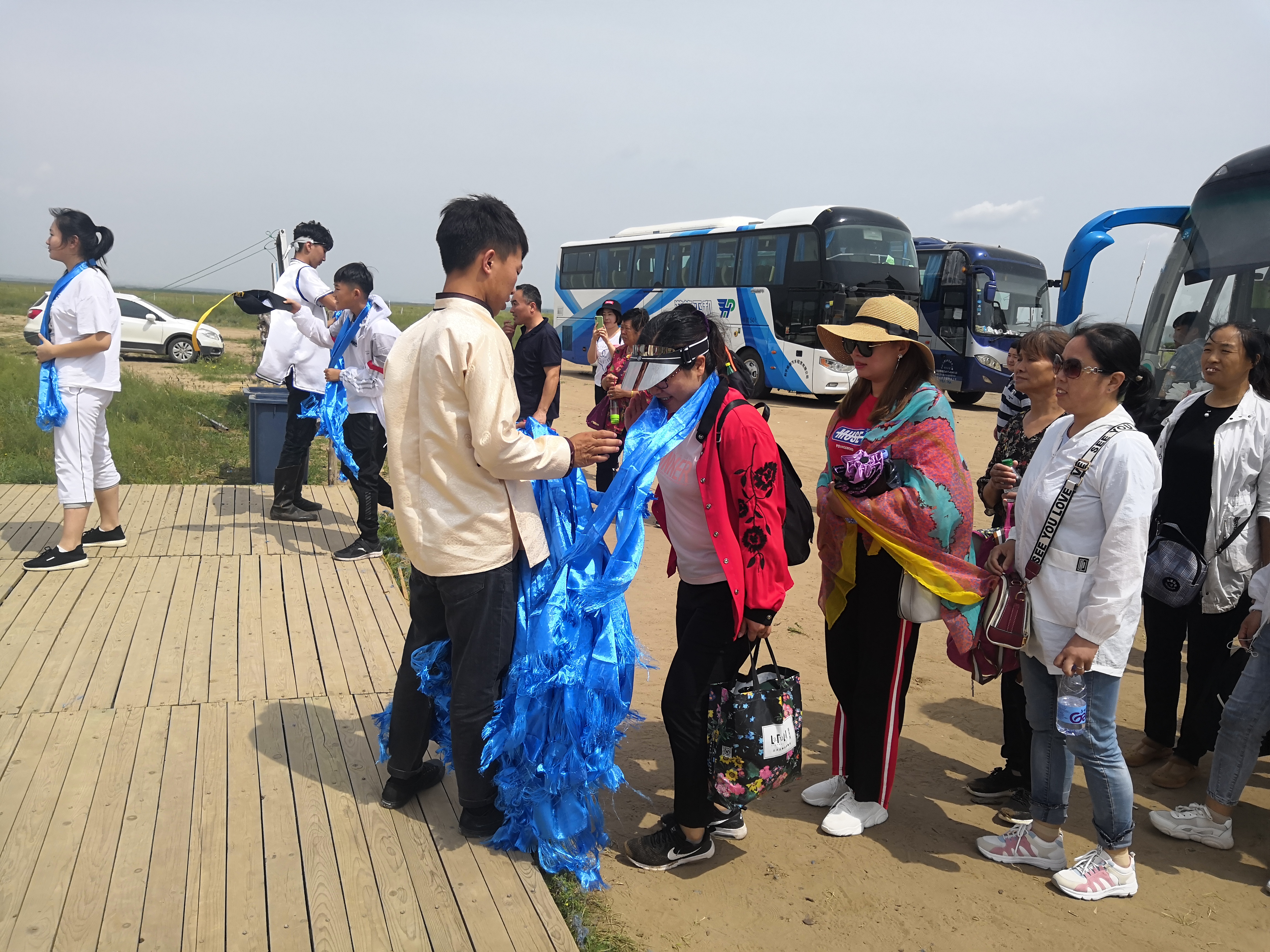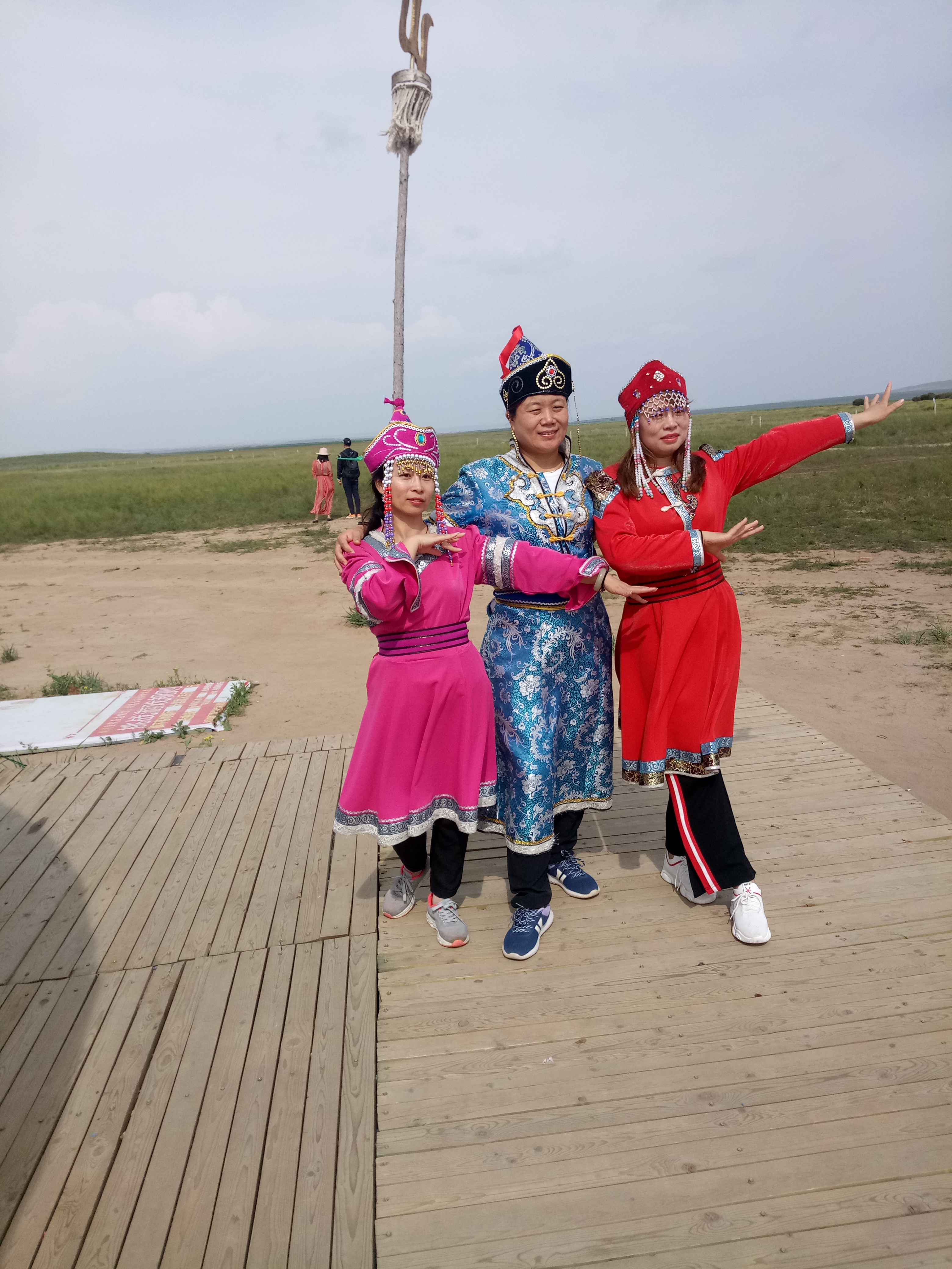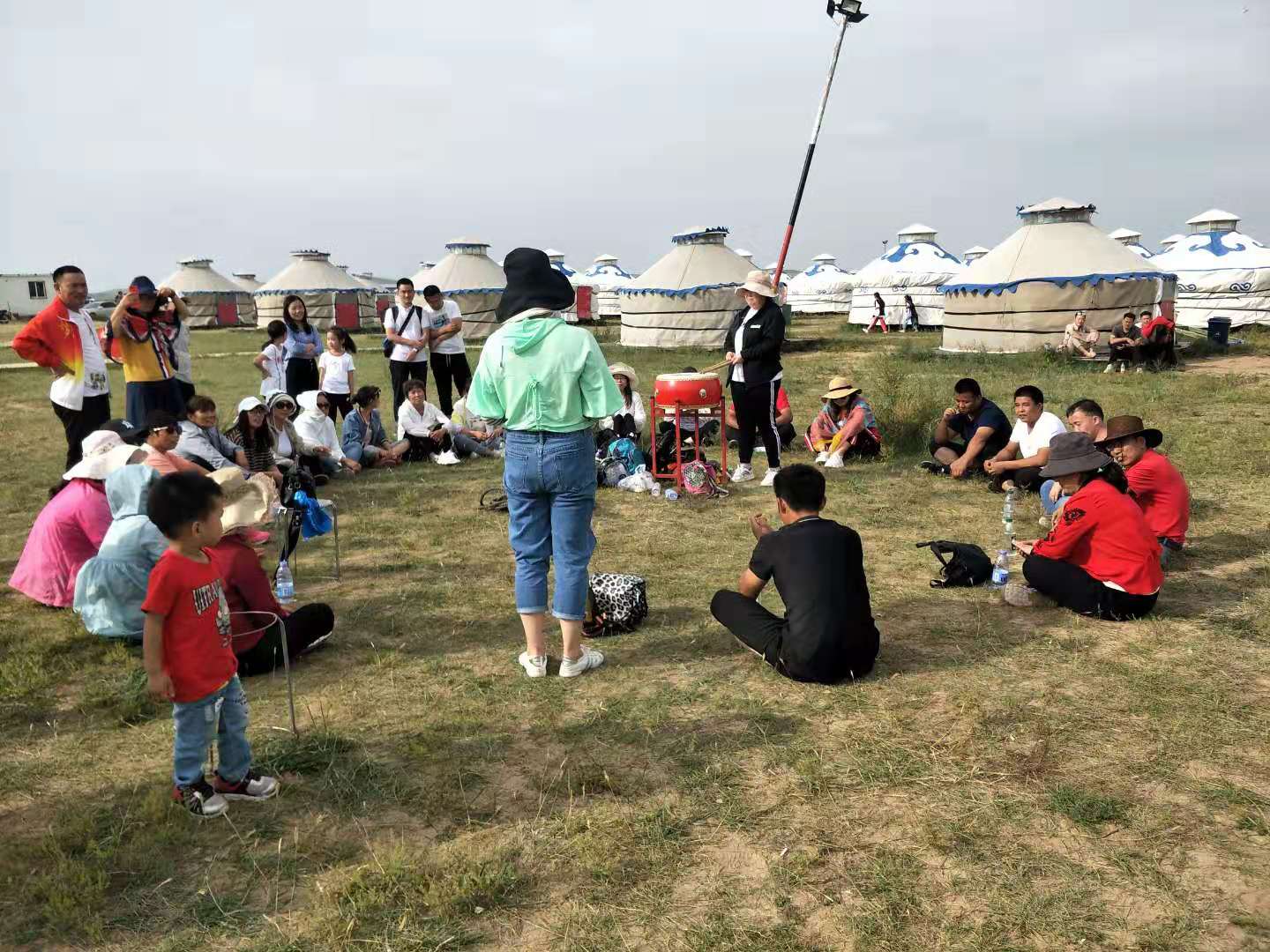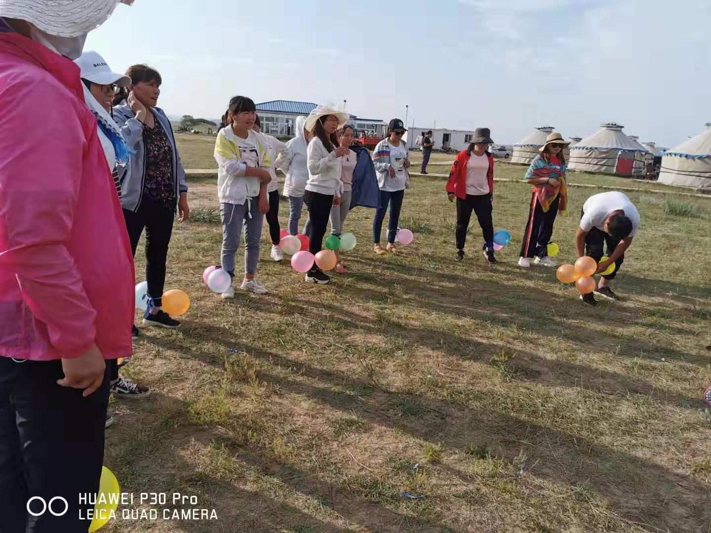 中午抵達(dá)蒙古大營,途徑忽必烈影視城和梳妝樓,盛裝熱情的草原小伙策馬揚(yáng)鞭,遠(yuǎn)遠(yuǎn)的迎著我們的車過來,為我們接風(fēng)洗塵,獻(xiàn)上哈達(dá)和下馬酒。中午品嘗草原的蝎子骨莜面宴,營地里的項(xiàng)目比較多,騎馬的驚魂,摔跤感受蒙古人彪悍,眾人蕩沙橋的刺激,步調(diào)不一致,便會被掉下橋,射箭,穿蒙古民族服拍照等,感受蒙古的文化氣息。我們來的時候自備了繩子和大鼓等裝備,拔河比賽,尤其于廠長老當(dāng)益壯,也不示弱參其中,在呼喊口號聲中使勁全身力氣,整個隊(duì)伍,身體向后傾斜。擊鼓傳花,在鼓聲中花兒在每個人的手中飛舞傳遞,就像一塊燙手的山芋,趕緊的拋給下一個人,鼓;湔l家,就表演一個節(jié)目了,好多游客過來圍觀,有的游客也參與進(jìn)來和我們一起進(jìn)行游戲,踩氣球等。晚上觀看名族演出和篝火晚會。讓您忘記城的喧囂與疲憊,感受草原的廣闊與放縱。