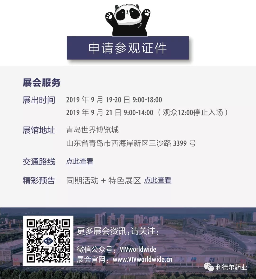您好!石家莊利德爾動(dòng)物藥業(yè)有限公司 誠(chéng)摯邀請(qǐng)您于 9 月 19-21 日赴 VIV Qingdao 2019 亞洲國(guó)際集約化畜牧展(青島)現(xiàn)場(chǎng)參觀。共聚青島西海岸,聯(lián)動(dòng)全球話畜牧。展位號(hào):S3F016 現(xiàn)場(chǎng)更有精美小禮品,期待您的光臨!