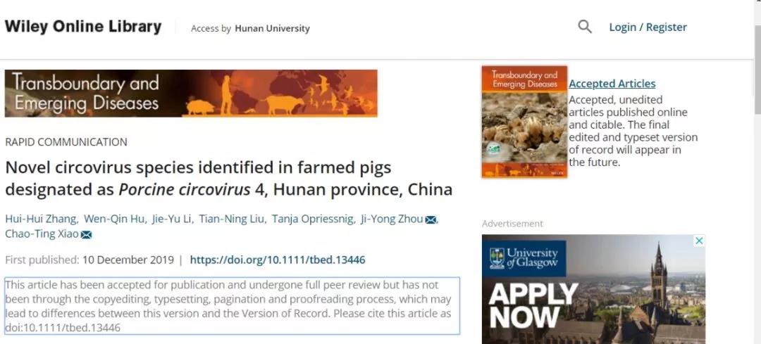 最近,湖南大學(xué)生物學(xué)院獸禽病毒學(xué)研究組發(fā)現(xiàn)一種新型豬圓環(huán)病毒(暫定名PCV4)。該病毒發(fā)現(xiàn)于具有嚴(yán)重臨床癥狀的豬只中,這個(gè)豬群先前被認(rèn)為是非洲豬瘟(ASFV)感染,后經(jīng)該實(shí)驗(yàn)室進(jìn)一步檢測(cè),排除了非洲豬瘟病毒,發(fā)現(xiàn)是PCV4和其他豬病原共感染導(dǎo)致該豬群發(fā)病,從而避免了該豬群被屠殺銷毀,減少了養(yǎng)殖戶的損失。相關(guān)發(fā)現(xiàn)發(fā)表于12月10日國(guó)際獸醫(yī)學(xué)頂級(jí)期刊《Transboundary and Emerging Diseases》。