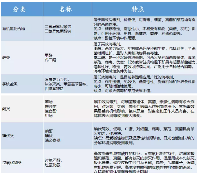 雞場(chǎng)現(xiàn)在常用消毒劑分為六大類: