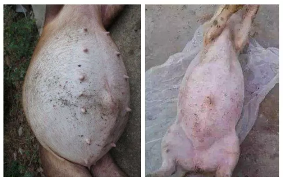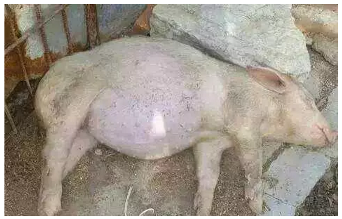 急性脹氣死亡的豬,往往沒有任何臨床癥狀,突然腹部膨脹,呼吸急促,就臥倒不起。有些早上好好的,中午就命歸西天了。這種病發(fā)病急、病程短、死亡快,一般情況都不給你留有治療時間。
