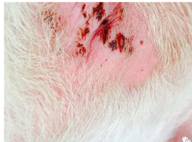 2、清潔創(chuàng)圍先用滅菌紗布將創(chuàng)口蓋住,剪除周圍被毛,用0. 1%新潔爾滅溶液或生理鹽水將創(chuàng)圍洗凈,然后用5%碘配進(jìn)行創(chuàng)圍消毒。