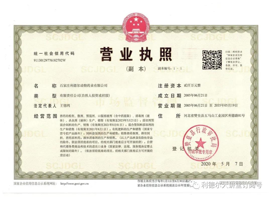 2020年度突如其來的疫情,勇?lián)?zé)任的利德爾人申請了衛(wèi)健委的消毒產(chǎn)品的經(jīng)營許可,用于生產(chǎn)人民所急需的消毒產(chǎn)品。經(jīng)營范圍再一次擴充。