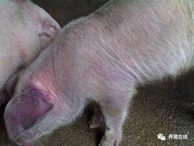 體溫升高到40~42℃,持久不退。食欲減退或停食,精神沉郁,伏臥喜睡、寒顫、擠臥一堆或鉆草窩。站立行走拱背彎腰,四肢無力,行動(dòng)遲緩,搖擺不穩(wěn),眼結(jié)膜發(fā)紅,有膿性分泌物,先便秘,后腹瀉。耳根、腹部、四肢內(nèi)側(cè)等處有指壓不褪色的紫紅色出血點(diǎn)。只喝水或不吃。