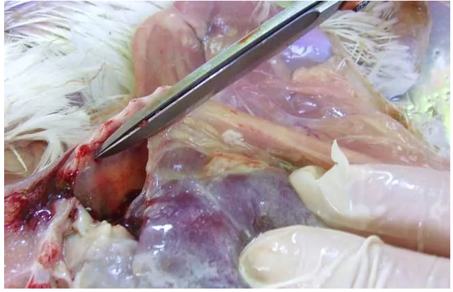 2、肉雞呼吸系統(tǒng)結(jié)構(gòu)原因這種“上呼吸道-肺臟-氣囊-骨骼”相互連通的結(jié)構(gòu)特點,使機體形成一個半開放的系統(tǒng),空氣中病原微生物,很容易通過上呼吸道造成全身感染,也是氣囊炎高 發(fā)的重要原因。因此,雞呼吸系統(tǒng)的這種結(jié)構(gòu)成了大腸桿菌感染的便利的通道,大腸桿菌一旦突破呼吸系統(tǒng)的粘膜屏障,會迅速通過氣囊進入胸腔合腹腔,感染內(nèi)部 器官,常在臨床上表現(xiàn)為氣囊炎